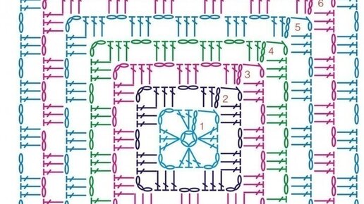 Бабушкин квадрат не перестаёт удивлять! Каких только схем напридумывали! Очень просто вяжется и так красиво смотрится!Так называемый «бабушкин квадрат», начинается из центра. Вяжем цепочку из 4 воздушных петель (ВП) и замыкаем её в кольцо. (Можно вместо них связать кольцо амигуруми.) Схема классического бабушкиного квадрата. 1 ряд. Вводя крючок в центр кольца, выполняем 2 ССН, 2 ВП, *3 ССН, 2 ВП* 3 раза **. Всего должно получиться 4 группы по 3 ССН. Ряд заканчиваем, протащив нить под первый ССН, закрепляем...