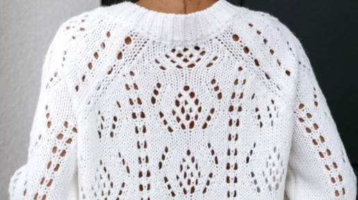 Видео набрало больше миллиона просмотров, и неудивительно: красивая модная кофта-сетка, да ещё вяжется регланом сверху вниз без швов. Автор канала- Евгения, канал jene the creator В этом видео показано, как вязать сетчатый свитер крючком по линиям реглана, начиная сверху с горловины из 16 воздушных петель и в общей сложности 128 петель, приведены приблизительные расчеты для разных размеров. Начинаем вязать сверху от горловины, набираем 128 воздушных петель.