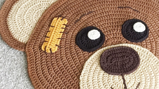 Всем привет! Сегодня я вам расскажу, как связать несложный и интересный коврик в детскую, ведь детскую комнату постоянно хочется улучшить. Такие коврики не только хорошо смотрятся, но еще они очень теплые, поэтому малыш сможет бегать по нему босиком. Нам понадобятся: Как вязать: Разделим коврик на несколько частей: большой круг-лицо, мордочка, нос, глаза и ушки. А вот схема по которой вязался этот красавчик: На первый взгляд может показаться слишком сложным, однако, на самом деле это не так. Каждая деталь вяжется обычными столбиками с накидом...