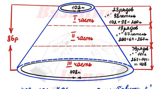 Рубрика: “Вязальные шпаргалки”. Для вязания круглой кокетки, можно использовать готовую схему жаккарда или ажурного узора, в которых прибавки предусмотрены в схеме. Но можно расчитать самой. Например: Плотность вязания - в 1 см - 2,5 петли и 3,3 рядов. Снимаем мерки: ОГ(объем груди) - 110 см ОШ (объем шеи) - 36 см ДИ (длина изделия) - 70 см ДР (длина рукава) - 76 см Определяем высоту кокетки по формуле. 25% ОГ = (25 х 110) : 100 = 27,5 Полученный результат можно уменьшить на 1,5 - 2 см 26 см х 3,3 р = 86 рядов - высота кокетки...