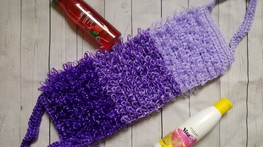 Для вязания мочалки нам нужны полипропиленовые нитки в 2 сложения и крючок №4-4.5 Набираем цепочку из 40-45 воздушных петель Вяжем 2 ряда столбиками без накида. Набираем 10 воздушных петель и закрепляем на другом краю ручки. Провязываем 3 петли по ручке и набираем еще 10 воздушных петель и закрепляем в круг. Провязываем 1 ряд по кругу столбиками без накида...