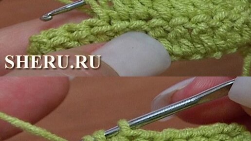 1. Сделать накид, ввести крючок под две дуги петли пр.р. 2. Захватить раб. нить. 3. Вытянуть петлю, на крючке образовались три петли. 4. Захватить рабочую нить и провязать три петли вместе. 5. Довязать ряд до конца, провязывая столбики за каждые две дуги петли пр.р. готово ))) Провязывание воздушной цепочки полустолбиками с накидом за заднюю дугу петли. Более подробно в видео 💖Не забудьте поставить...