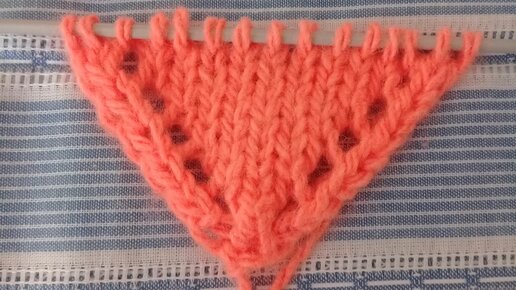 Рада приветствовать всех на своем канале!!! Итак, сегодня буду как могу подробно опишу и покажу вязание шали спицами. Схема будет той самой шали, которую вязала на заказ для своей знакомой. Подробная схема вот здесь на фото Взяла для вязания образца ярко-оранжевую пряжу. Набираю на спицы 3 петли обычным способом и провязываю ряд изнаночными. Поворачиваю. Получилось вот так Теперь вяжу так: 1 кромочная, накид, 1 лицевая, накид, 1 кромочная. При этом накиды провязываю перекрещенными, чтобы не было "дырочек"...