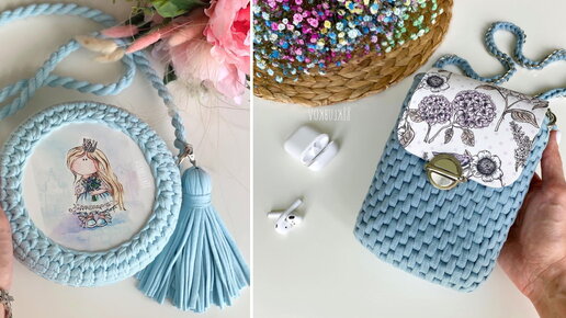 11 моделей вязаных сумок крючком из трикотажной пряжи и полиэфирного шнура: основные принципы и схемы их вязания