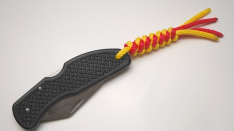 Здравствуйте дорогие подписчики и гости канала. Сегодня пойдет речь о вязании темляков для ножей. И так, нам понадобится два куска паракорда различного цвета. Здесь они порядка 60-70 см. Для такого плетения это не очень много, советую столько и делать. Логично, если один будет темный, другой яркий. Я начну плести с яркого, поэтому он у меня чуть длиннее (на длину петли). Начинаем плести. Можно снять с пальцев, можно не снимать, как удобней. И так, плетем дальше. Перекидываем яркие концы.Так же как и с первым узлом, протягиваем через них темные концы...