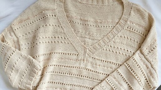 "Ванильный пуловер". Бесплатное описание вязания: текст, фото, видео сложных моментов