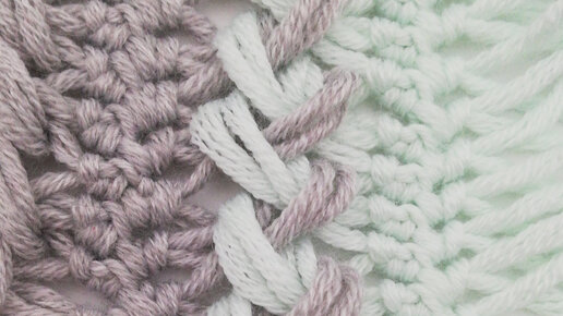 В первой части мы поговорили о том, что собой представляет вязание на вилке, какие инструменты понадобятся и как связать базовую ленту на вилке zen.yandex.ru/...659 Во второй части обсудим, как соединять готовые ленты между собой и разберем один из способов. Возможны 3 варианта : · соединение лент без дополнительной нити · соединение лент с дополнительной нить и обвязкой · соединение ленты в мотивы. Соединение лент без дополнительной нити. Это простой и быстрый способ. Ленты, которые будете соединять, положите параллельно друг другу лицевой стороной вверх...