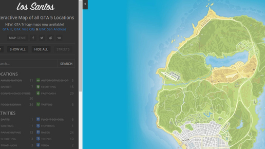 Всем привет сегодня я хотел поделится с вами двумя полезными ссылками на игру GTA 5. Встроенная карта GTA в самой игре немного не удобная и малоинформативная, поэтому я задался целью найти для себя альтернативу. Вот что я нашел: Первый сайт удобный но весь на английском, в принципе немного разбираясь в английском языке можно все понять...