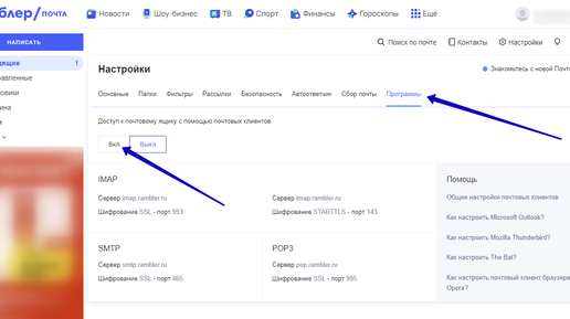 Как и где включить IMAP на почте Rambler