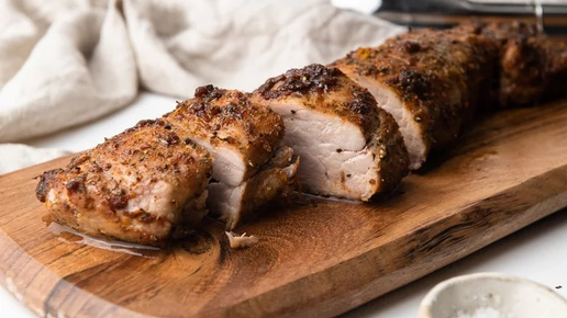 Получается сочно, нежно и очень ароматно. Такая вырезка прекрасно сочетается с любым гарниром. Ингредиенты: Как готовить: 1. Разогреть духовку до 200 градусов. 2. Порубить мелко и смешать чеснок, цедру лимона, сахар, смесь трав, паприку, тмин, соль и перец. Либо использовать свои какие-то приправы по вкусу. 3. Подготовить свиную вырезку, отрезав все видимые белые пленки и ненужные места. 4. Обсушить мясо бумажным полотенцем. Мыть его не нужно! 5. Смазать вырезку маслом. Оставить на 10 минут, чтобы масло немного распределилось само по себе...