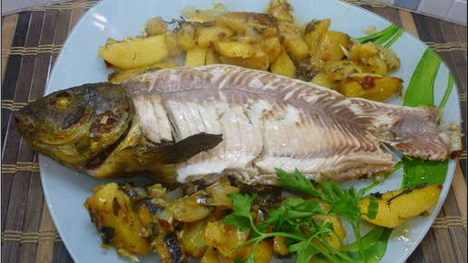 Линь, запеченный в духовке с картошкой