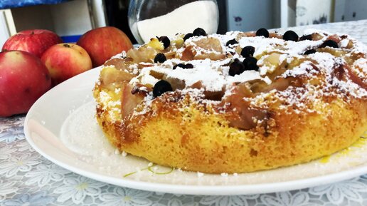Ингредиенты: яблоки - 500 гр. мука - 1 стак. сахар - 1 стак. яйца - 3 шт. (4 маленьких). соль - 1 щепотка. масло растительное- по вкусу. сахарная пудра - по вкусу. черная смородина - по вкусу. 1. В чашу вбиваем 3 яйца С0, добавляем к ним соль, чтобы лучше взбивалось. 2. Туда же добавляем сахар. 3. Взбиваем на высокой скорости до увеличения в объеме в 3 раза. 4. Далее постепенно вмешиваем туда пшеничную муку. 5. Выпекаем мы шарлотку в мультиварке, но если нет, то можно и в духовке...