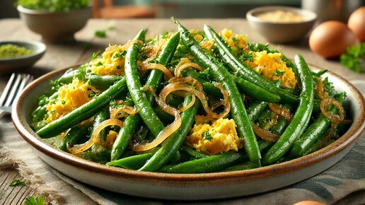 Этот рецепт поможет тебе приготовить невероятно вкусную и полезную стручковую фасоль! Она получается ароматной, нежной и отлично подходит как гарнир или самостоятельное блюдо. Можно использовать свежую или замороженную фасоль, что делает этот рецепт универсальным для любого сезона. 🌱 ✔ 800 г стручковой фасоли (замороженной или свежей)