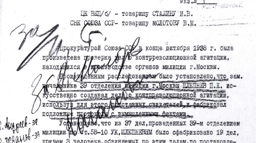 85 лет назад, 6 февраля 1939 года, был вынесен приговор группе работников милиции, занимавшихся созданием дел по обвинению в антигосударственной агитации, и тем, кто им содействовал; они, стремясь держаться в русле проводившейся властью политики, не учли, что этот поток имеет обыкновение резко менять направление. Из записки прокурора СССР А. Я. Вышинского секретарю ЦК ВКП(б) И. В. Сталину и председателю Совета народных комиссаров СССР В. М. Молотову, 17 января 1939 года. Прокуратурой Союза ССР в конце октября 1938 г...