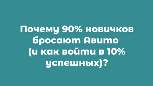 Почему 90% новичков бросают Авито (и как войти в 10% успешных)?