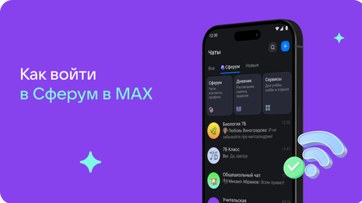 Подключите пространство Сферум для общения по учёбе в МАХ. Это займёт всего пару минут. Итак, вы зарегистрировались в мессенджере MAX. Если у вас ещё нет аккаунта Сферума, самое время его завести. Для этого нужно присоединиться к сообществу вашей образовательной организации. Сделать это можно либо по ссылке-приглашению от администратора (уточните его контакт у педагога), либо через чат-бот Сферума. Чтобы запустить чат-бот, зайдите в «Профиль» и нажмите «Войти в Сферум». Откроется диалог с ботом — в нём жмите «Начать»...