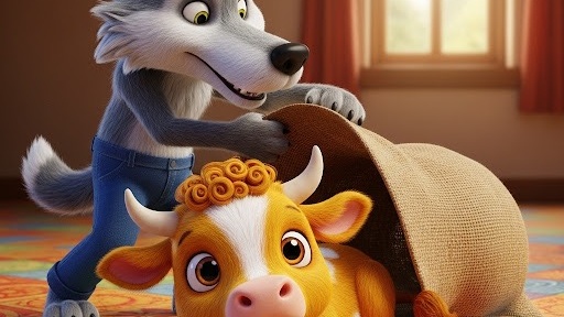 Однажды Волк украл в деревне Телёнка. Засунул в мешок и принёс к себе в избу. А там решил съесть его не спеша и с удовольствием. Вытряхнул из мешка и ахнул: