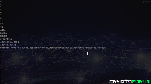 Приватный ключ высвечивается в консоли и сохраняется в wallets.txt