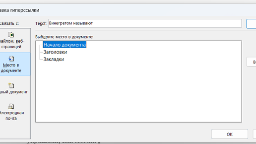Ну чтож приступим. Для создания гиперссылки на место в документе необходимо выполнить ряд простых шагов: 1 способ: 1. В окне открытого документа выделяем на странице фрагмент текста, символ или графический объект, к которому будет привязана гиперссылка. 2. Щелкаем правой кнопкой по выделению. 3. В контекстном меню выбираем пункт «Гиперссылка». 4. В окне «Вставка гиперссылки» в графе «Текст» отобразится выделенное слово или символ. 5. В группе «Связать с» выбираем кнопку «Местом в документе» и выбираем пункт Начало документа...