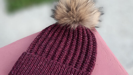 Рельефное вязание, объёмная резинка. Шапка смещённой резинкой.