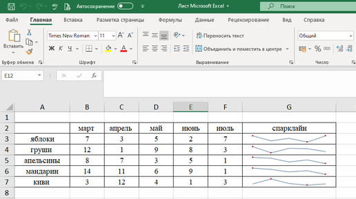 В данной короткой статье я расскажу ка ставить строку в Excel. Рассмотрим таблицу: И вставим в таблицу строку с наименованием: "грейпфрут", которую расположим под строкой "груши". Для этого выделяем строку, которая у нас будет ниже новой, выбираем на главной вкладке "Вставить" и нажимаем "Вставить строки на лист"...