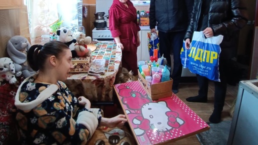 Татьяна вместе с дочерью Софией, у которой врачи диагностировали церебральный паралич, проживают в районе, сильно пострадавшем от атак нацистов. У семьи единственный кормилец, а бабушка после перенесенного инсульта также требует внимания и заботы. 📌 Проведать женщин, оказать им помощь на минувших выходных приехали депутат Народного Совета ДНР Александр Серёженко и координатор Горловского местного отделения ЛДПР Евгений Шубин. Народные избранники передали семье продуктовые наборы...
