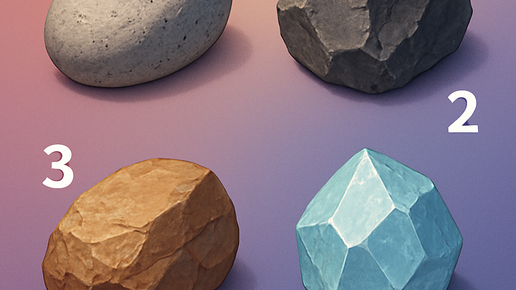 Здравствуйте, друзья! У каждого человека есть внутренняя сила. Кто-то чувствует её в себе ежедневно, кто-то замечает только в сложные моменты, а кто-то удивляется, насколько он стойкий, когда жизнь подбрасывает испытания. Сила характера не всегда связана с внешней твёрдостью. Иногда она проявляется в мягкости, терпении, спокойствии, способности держать себя в руках или начинать всё заново, даже когда нет сил. Этот тест создан, чтобы помочь вам взглянуть на себя со стороны. На картинке изображены четыре камня...