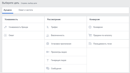 Facebook цели компании | выбор цели таргетированной рекламы фейсбук