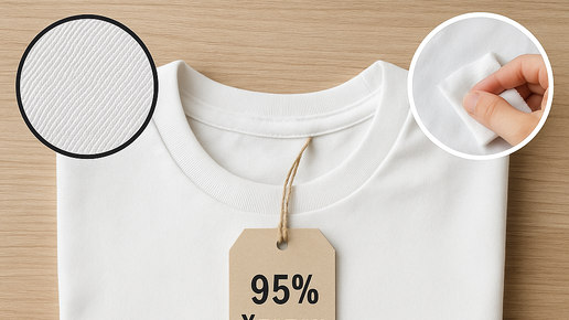Разбираем, какая ткань лучше для футболки, как проверить качество в магазине и почему мы выбираем 95% хлопка и 5% лайкры для долговечности Совет: если хотите, чтобы футболка сидела по фигуре и держала форму, выбирайте варианты с добавлением лайкры или эластана. Плотность измеряется в г/м²: Проверка в магазине: поднесите ткань к свету — чем меньше просветов, тем выше плотность. Вязка: Окраска: Проверка: проведите белой салфеткой по ткани — если цвет остался на ней, футболка быстро потеряет вид. Даже качественная ткань может дать усадку на 3–5% после первой стирки...