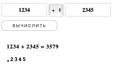 Онлайн калькулятор. Сложение, вычитание, умножение и деление столбиком.