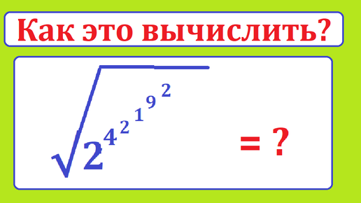 Приветствую читателей и подписчиков канала Тесты_математика! Рассмотрим довольно сложную алгебраическую задачу, вычисление корня квадратного из так называемой этажерку степеней. Пример показан на рисунке далее. То есть под корнем двойки в степени 4, 4 в степени 2, далее идут степени 1, 9 и 2. Задача. Вычислите √[2^4^2^1^9^2]. Начинаем вычислять это выражение с самой верхней (то ест записанной в верху) выражение 9^2 = 81. Нужжно запомнить это правило. Далее идут вычисления степеней по порядку...