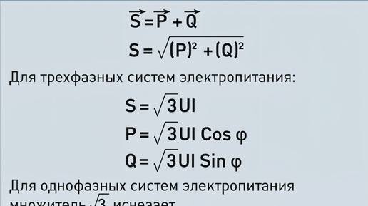 Напоминание формул вычисления мощности