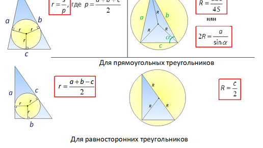 "МАГиЯ" 216 читали · 3 года назадПодписатьсяПодготовка к ОГЭ и ЕГЭ. Важные формулы радиусов вписанных и описанных окружностей.