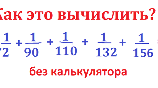 Как вычислить без калькулятора сумму дробей: 1/72 + 1/90 + 1/110 + 1/132 + 1/156