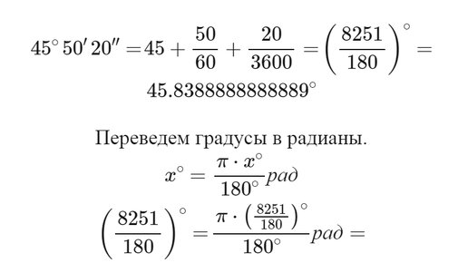 Градусы, минуты и секунды - это единицы измерения углов, используемые в геометрии и математике. Градус - это основная единица измерения угла, где полный оборот равен 360 градусам. Каждый градус делится на 60 минут, а каждая минута делится на 60 секунд. Таким образом, угол можно представить в виде градусов, минут и секунд для более точного измерения. Радиан - это единица измерения угла, которая определяется как угол, соответствующий дуге окружности длиной равной радиусу этой окружности. Чтобы перевести...