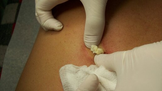 Выдавливание огромного жировика! Жесть как много гноя