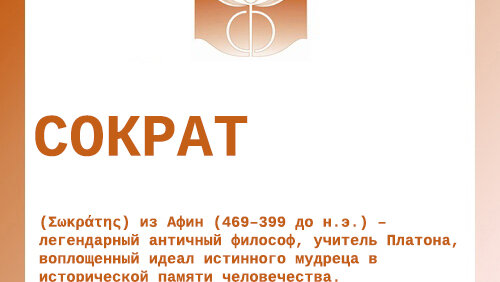 (Σωκράτης) из Афин (469–399 до н.э.) – легендарный античный философ, учитель Платона, воплощенный идеал истинного мудреца в исторической памяти человечества. С именем Сократа связано первое фундаментальное деление истории античной философии на до- и после-сократовскую, отражающее интерес ранних философов 6 – начала 5 вв. к натурфилософии (Досократики), и последующего поколения софистов 5 в. – к этико-политическим темам, главная из которых – воспитание добродетельного человека и гражданина (см. Пайдейа)...
