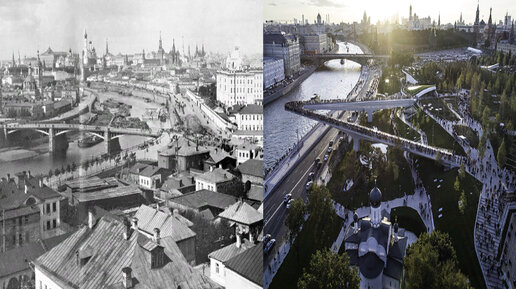 Там, где сегодня находится современный мост, когда-то стоял старый деревянный, а площадь советской эпохи была когда-то полна православных церквей. Российский капитал меняется с каждым десятилетием. Сравним фотографии с 1860-х-1900-х годов с современными видами тех же мест. 1.Вид на Кремль со стороны Москвы-реки, 1866 ( в 19-е века и сегодня ) 2. Воскресенская площадь и часовня Иверской иконы Божией Матери, 1900-е годы ( в 19-е века и сегодня ) 3...