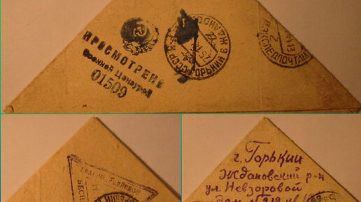 Именно так выглядели письма с фронта во время Великой Отечественной войны. Несколько пожелтевших треугольников я обнаружил двадцать лет назад в документах у мамы. Это единственная память о ее старшем брате, погибшем в страшной войне. К сожалению текст был написан простым карандашом и от времени практически исчез- прочитать невозможно. На всякий случай я сфотографировал содержание и спустя 20 лет решил поработать с яркостью и контрастностью изображения и у меня кое-что получилось. Единственная фотография...