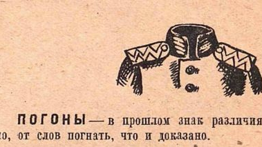 6 января 1943 года в Красной Армии указом Президиума Верховного Совета СССР были введены погоны. Ранее их упразднила революция, долгое время они считались пережитком старого, царского режима. Об отношении к ним в предвоенные годы можно судить по этой заметке из шуточной «военной энциклопедии» журнала «Крокодил» (1936 год): «Погоны – в прошлом знак различия. Происходит, очевидно, от слов погнать, что и доказано».