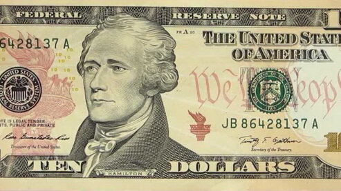 10 долларовая купюра,на ней изображён Гамильтон,он не был президентом США. Интересно о долларах.