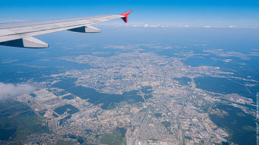 Сегодня я покажу как выглядит Екатеринбург из самолета в летний солнечный день.