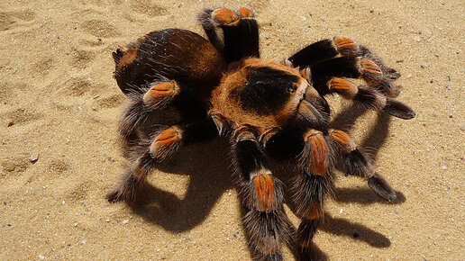Месяц назад решила окончательно добить арахнофобию и купила паука-птицееда Brachypelma Smithi. Таким, как на фото, он будет через год. А пока... Пауку глубоко плевать на хозяина (на сленге - "кипера"). Если воображение рисует ужасную картину, когда чуть откроешь банку, а паук как прыгнет, как бросится, как укусит - то совершенно напрасно оно так делает. За всех пауков поручиться не могу, они бывают и нервные, и агрессивные, но вот эта юная мелочь четвертой линьки при открытии контейнера либо спокойно сидит на месте, либо, если уж совсем потревожить, стремительно убегает в убежище...