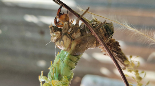Много раз бывала в Крыму, но с цикадами познакомилась первый раз. Точнее, познакомил меня с ними мой пушистый рыжий друг, который устроил охоту на молодых цикадок, только что прошедших свою последнюю линьку и сверкающих на солнышке зелёными крылышками. Феня радостно гонялся за ними по полянке, и я пошла посмотреть, что там у него такое. Оказывается, цикады напоминают пузатых мух-гигантов с большими сверкающими крылышками. И мне стало интересно, что это за насекомые такие. Слышать их мне уже доводилось, они тут с каждым днём громкость набирают...