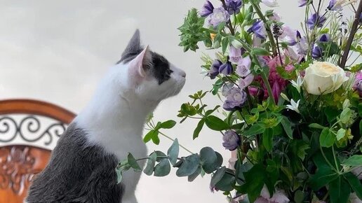 Ожившие фото. Кот и цветы. #ожившие фото,#животные,#кошки,#юмор,# кошки и цветы