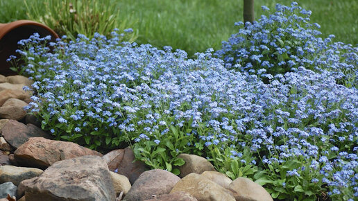 Если вы хотите добавить изюминку своему парадному цветнику и радоваться его яркости уже в начале лета, попробуйте посадить незабудки. Обычно их высаживают в рокариях, а в качестве компаньонов выбирают тюльпаны и нарциссы - такие композиции очень красиво выглядят, и создается впечатление, что высокие ножки тюльпанов выступают прямо из голубого облака. Однако и сами по себе незабудки очень красивы и, самое главное, неприхотливы, так что вырастить их совсем несложно, а удовольствия вы получите - голубое море...