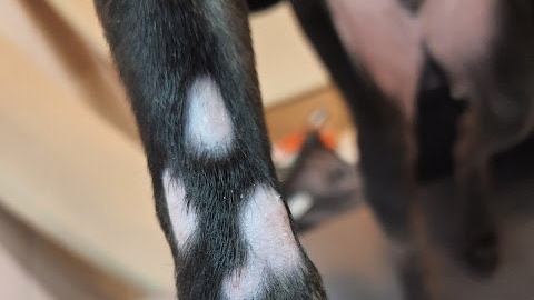 Фото слева - начало дерматомикоза. Правое фото - состояние после 10 суток лечения. Отмечается рост шерстного покрова с периферии очагов поражения к центру. Прогноз благоприятный. Работаем!
