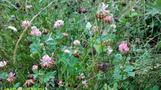 Есть виды клевера с красными соцветиями-головками – клевер луговой и клевер средний. У клевера ползучего головки преимущественно белые. И весьма распространён представитель того же рода с бело-розовыми соцветиями.