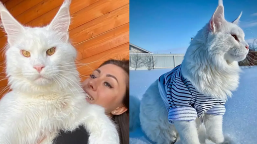 Белоснежный мейн-кун по имени Кефир весит 12 килограммов и продолжает расти, приводя в изумление людей по всему миру.