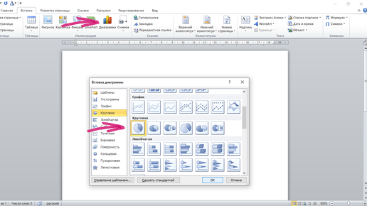 Что делать, если вы пишите текст и хотите разбавить его наглядными изображениями, например, диаграммой? Круговая диаграмма является одной из самых часто используемых. Алгоритм вставки диаграммы в Word уже был описан в предыдущей статье. На этапе выбора диаграммы вам необходимо определиться с её типом, хотя, его можно будет поменять в последующем: После нажатия в документе появляется диаграмма, а также окно Excel: В таблице Excel необходимо вбить нужные данные, например: Для того, чтобы изменить информацию, нужно нажать на ячейку в Excel и просто начать писать...